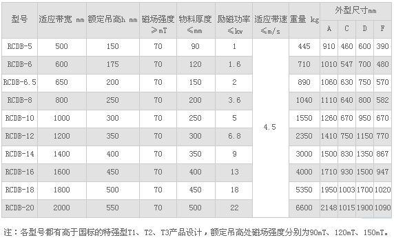 適用范圍: 適用破碎機(jī)前及輸送機(jī)膠帶上的任何物料除鐵,可適用于各種惡劣的環(huán)境條件。 技術(shù)特點(diǎn): 1、磁路采用計(jì)算機(jī)模擬設(shè)計(jì),透磁深度大,磁力強(qiáng)。 2、內(nèi)部采用電工專用樹脂澆注,自冷式全密封結(jié)構(gòu),防塵、防雨、耐腐蝕。 3、可有效吸除混雜在非磁性物料中0.1-35公斤的鐵磁性物質(zhì)。